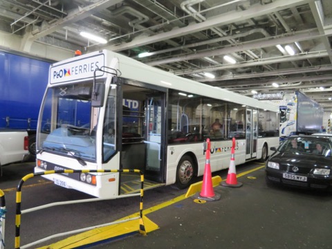Bei der Ankunft in Cairnryan mit der European Causeway werden wir mit dem gleichen Bus wieder aus dem Schiff ins P&O Terminal gebracht. Mit einem Shuttle-Bus fahren wir nach Stranraer und von dort geht's dann weiter mit der Bahn.