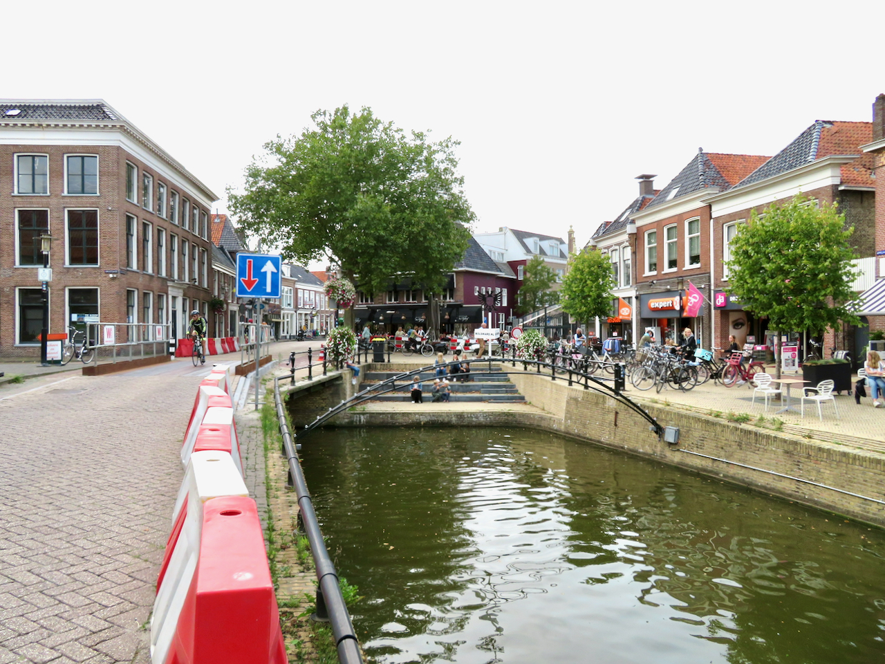 Heute fahre ich dem Van Harinxmakanaal entlang nach Osten, bis der in den Prinses Margrietkanaal einmündet. Dann folge ich diesem weiterhin Richtung Osten nach Burgum. Dort mache ich eine Pause und fahre mit dem Velo durch die Stadt.