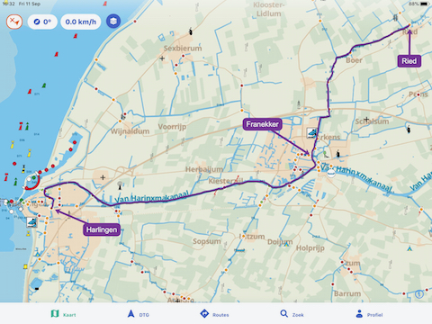 Die heutige Route (Harlingen - Witmarsum - Bolsward)