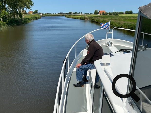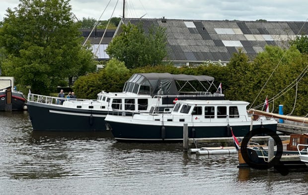 Auf vielseitigen Wunsch der Crew wollen wir dieses Jahr wieder nach Friesland zum gleichen Anbieter in Leeuwarden wie 2021. Weil wir mit dem Boot der letzten Bootstour, der Waterraaf, sehr zufrieden waren, wollten wir dasselbe wieder. Aber die Waterraaf ist leider schon vergeben. Also bekommen wir das baugleiche Schwester-Schiff Aalscholver. Auch dieses ist 15 Meter lang und hat sechs Doppelkabinen. Dieses grosse Boot hat viele Vorteile, aber einen Nachteil: Es hat eine Durchfahrtshöhe von 4.20 Meter und deshalb können wir auch diesmal die kleinen Kanäle nicht befahren.