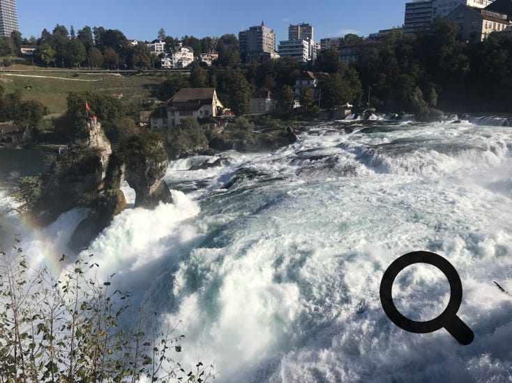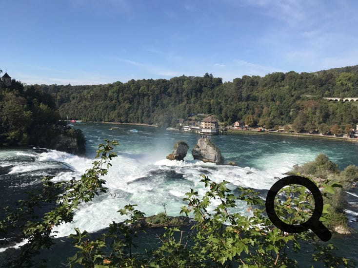 im Selbstbedienungs-Restaurant am Rheinfall oder im Schiffs-Restaurant